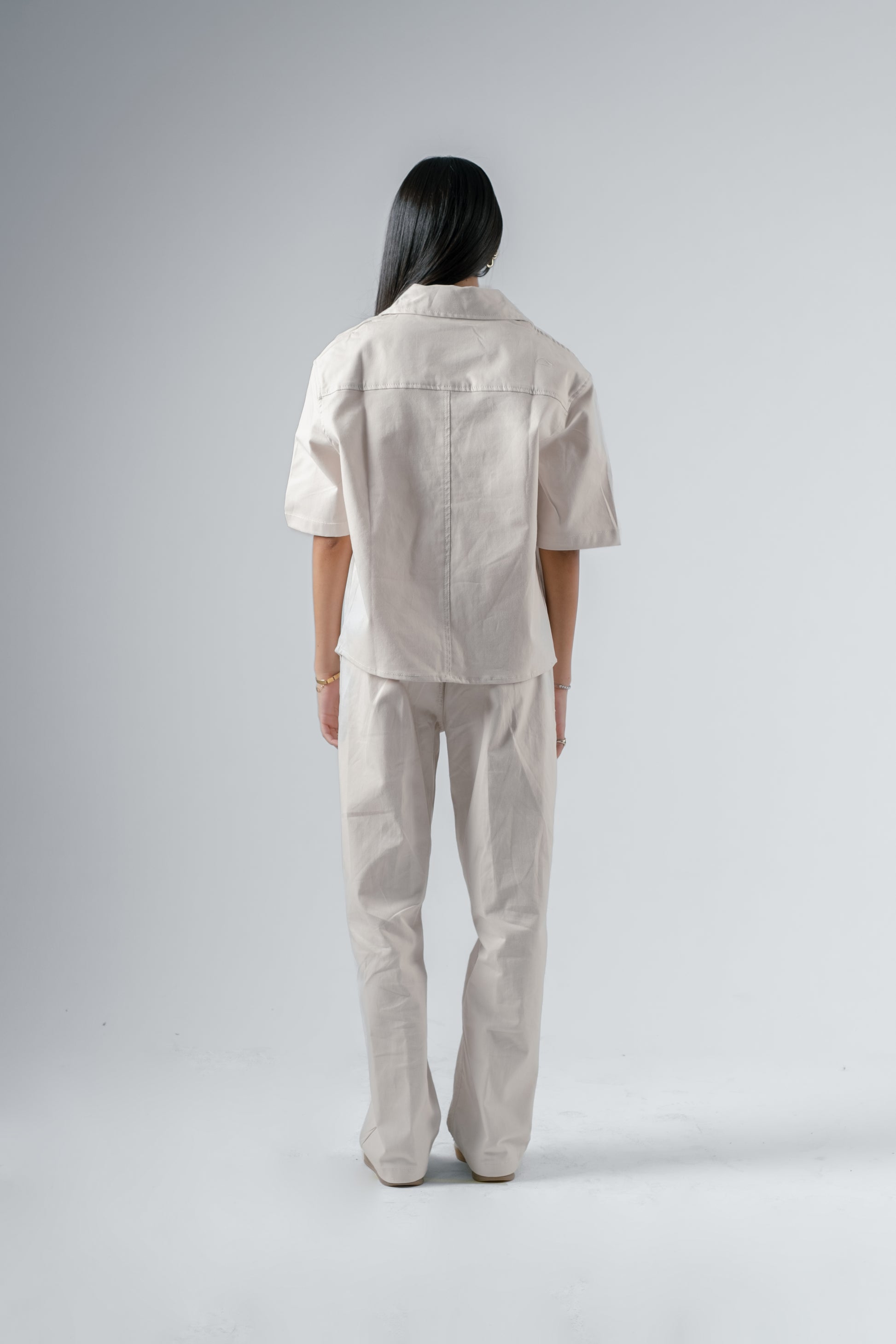 Tailored with precision, this Creme Shirt embodies understated elegance. Crafted from a premium blend of 98% cotton and 2% Lycra gabardine, it offers a structured yet effortless fit.